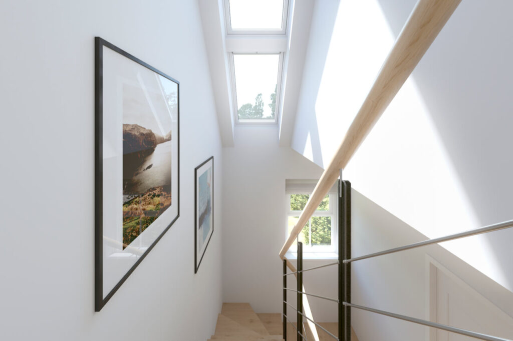 Zelfs in gangen zonder directe toegang tot het dak zijn er oplossingen mogelijk. Denk bijvoorbeeld aan een Velux lichttunnel, die via een reflecterende buis daglicht naar binnen brengt. Ideaal voor gangen midden in huis waar geen dakraam geplaatst kan worden.