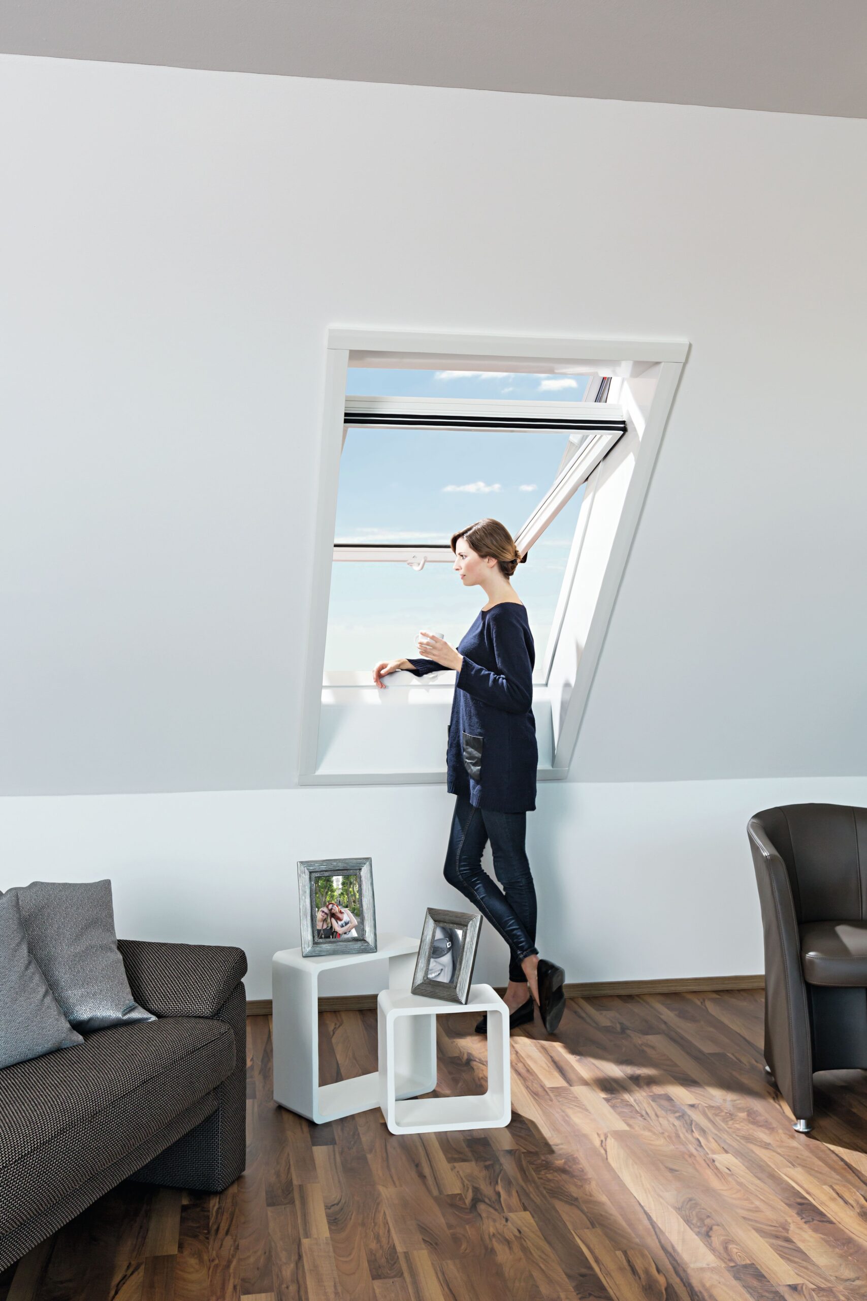 Het Roto Designo R7 is een premium dakvenster dat zorgt voor meer daglicht, frisse lucht en een panoramisch uitzicht. Dankzij het hoge draaipunt blijft de raamvleugel buiten het leefgebied, waardoor u maximale hoofdruimte, bewegingsvrijheid en comfort ervaart.