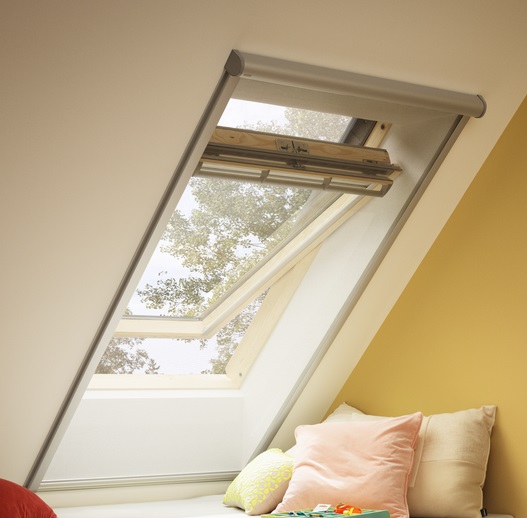 Binnenzonwering wordt aan de binnenzijde van het dakraam gemonteerd en kan zonder problemen gecombineerd worden met een insectenhor, zolang beide correct geplaatst zijn.
